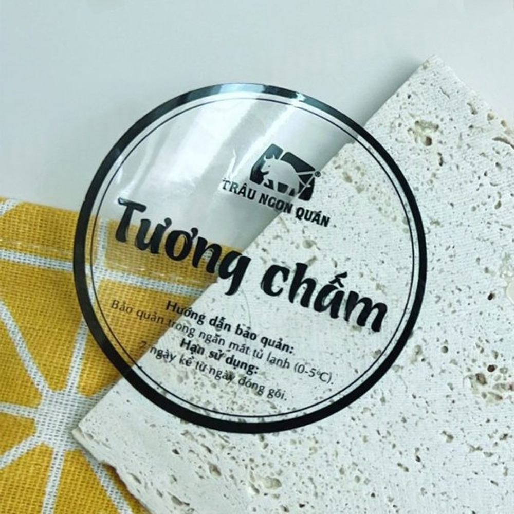 Tem nhãn thực phẩm & đồ uống: Dán lên chai trà sữa, hũ yến, hộp bánh kẹo, đồ ăn vặt (dùng decal nhựa cho đồ uống lạnh).