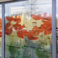 Dán kính trang trí: Trang trí cửa kính văn phòng, quán cafe, showroom với các họa tiết hoa văn hoặc logo tinh tế.
