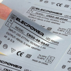 Tem thông số kỹ thuật: Dán lên máy móc, thiết bị điện tử, motor, máy bơm để ghi thông tin kỹ thuật, hướng dẫn sử dụng, cảnh báo an toàn.